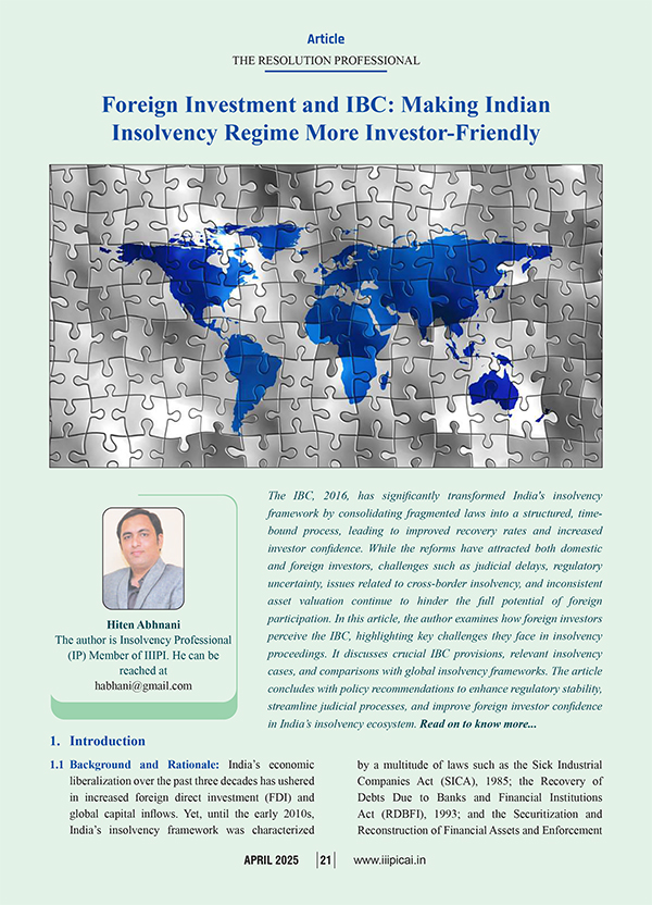 Article Foreign Investment and IBC Making Indian Insolvency Regime More Investor Friendly Hiten