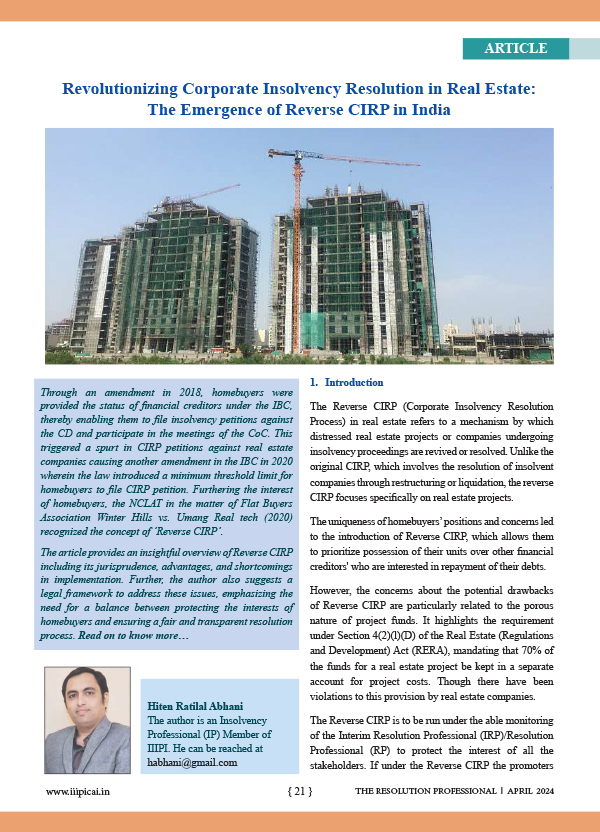 Article Revolutionizing Corporate Insolvency Resolution in Real Estate The Emergence of Reverse