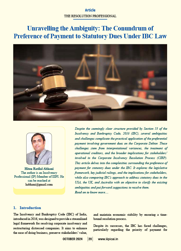 IBC Article Unravelling The Ambiguity The Conundrum of Preference of Payment to Statutory Dues Under IBC Law